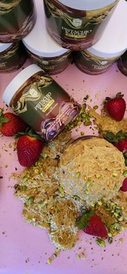 Every spoonful is a symphony of luxurious taste sensations, carefully crafted to delight your senses. Treat yourself to a truly regal experience with our Pistachio Kataifi Crunchy Spread.