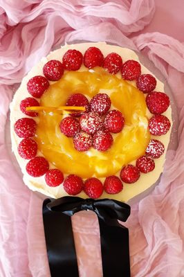 Indulge in the ultimate luxury dessert experience with our exquisite Vanilla, Lemon Curd & Raspberry Cake. Moist, velvety vanilla sponge is lavishly filled and covered with heavenly French vanilla cream and a tangy, zesty lemon curd, expertly balanced to create a truly sumptuous taste sensation. Finished with a beautiful dressing of fresh raspberries on top, this elegant cake delivers a smooth, creamy texture with a refreshing citrus finish that will transport you to a world of pure bliss.