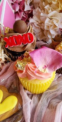 These LOVE YOU & XOXO Luxe cupcakes are sure to capture anyone's heart this Valentine's. Elegantly dressed with dried edible blooms, chocolate and fancy cupcake charms, these cupcakes are lusciously addictive and look too good to eat! Love, share and enjoy with that someone special. A mixed selection of handcrafted cupcakes, topped with a signature buttercream and luxe decorations.